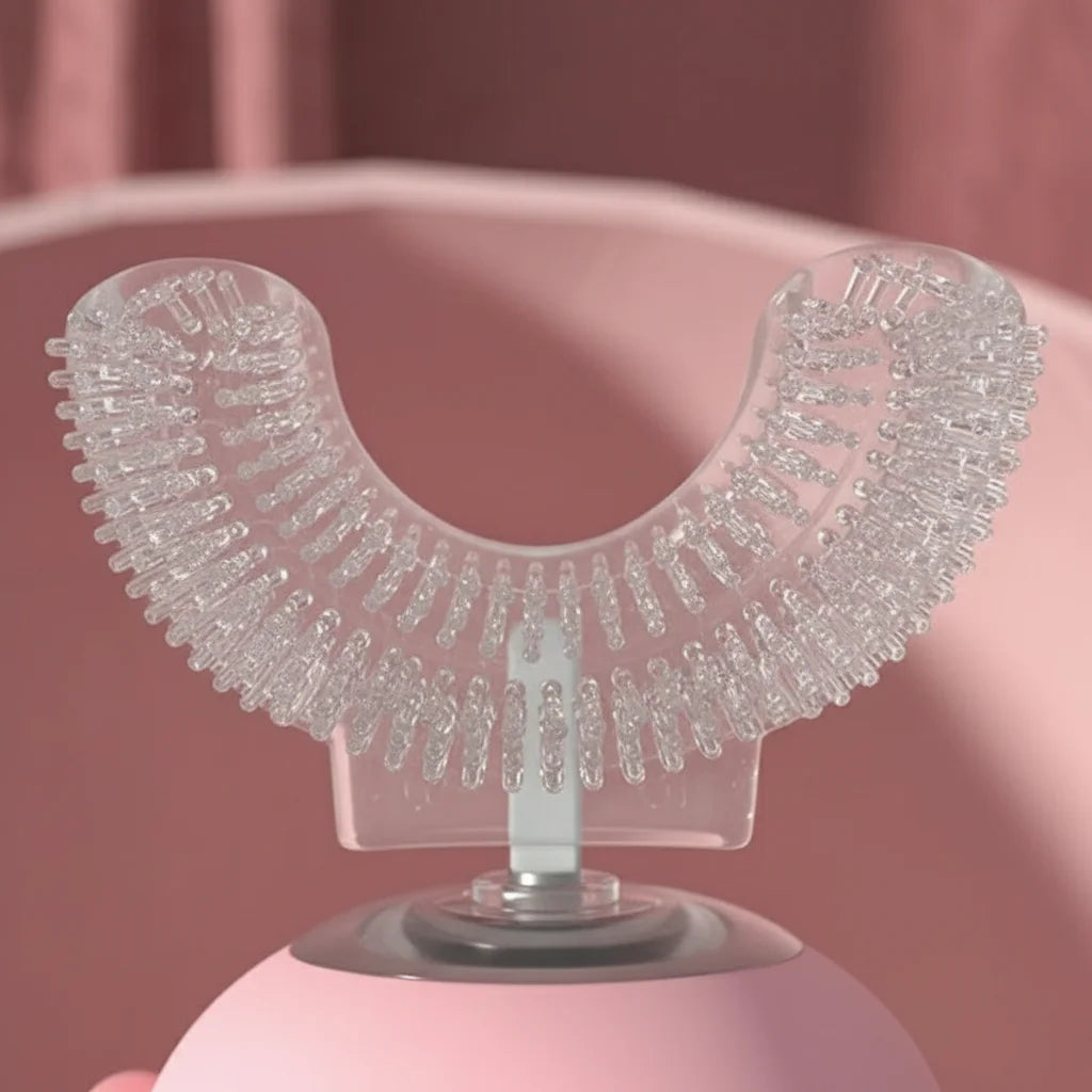 The innovative U-shaped design allows the brush head to surround all teeth, cleaning every surface simultaneously. This ensures a thorough clean even in hard-to-reach areas, making brushing super efficient and fun!
